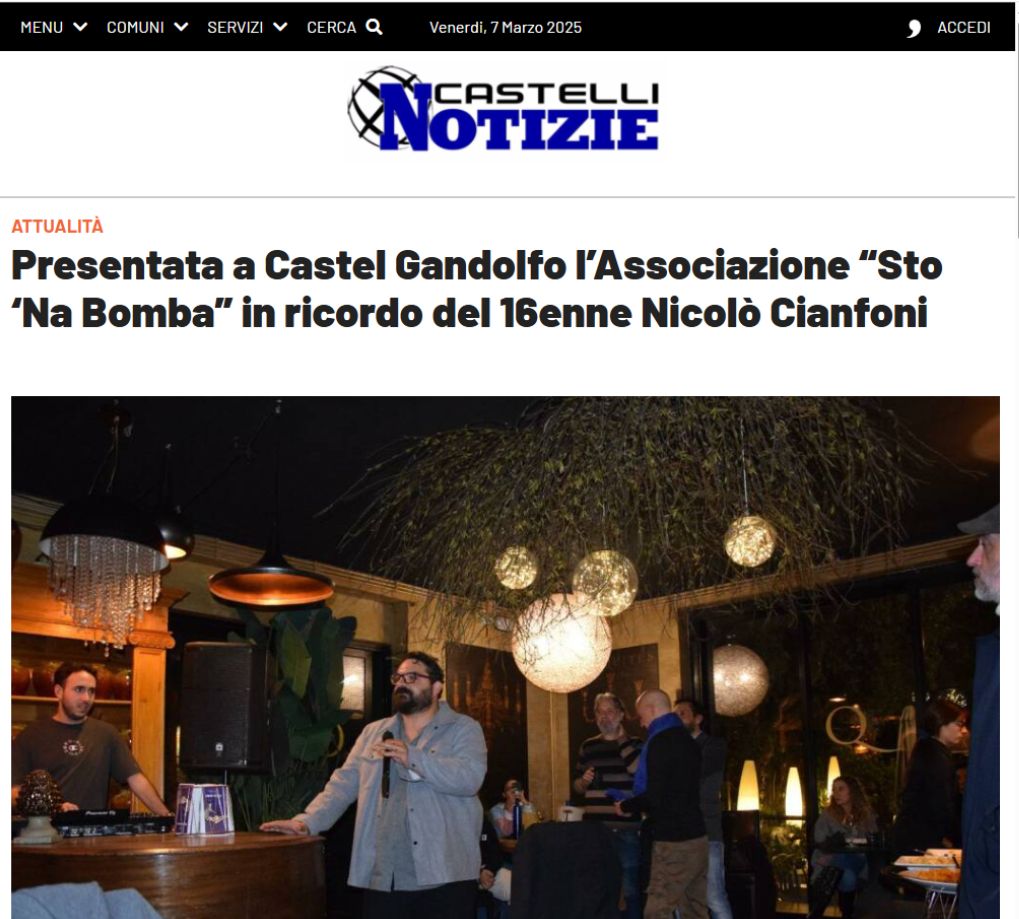https://www.castellinotizie.it/2024/11/20/presentata-a-castel-gandolfo-lassociazione-sto-na-bomba-in-ricordo-del-16enne-nicolo-cianfoni/
